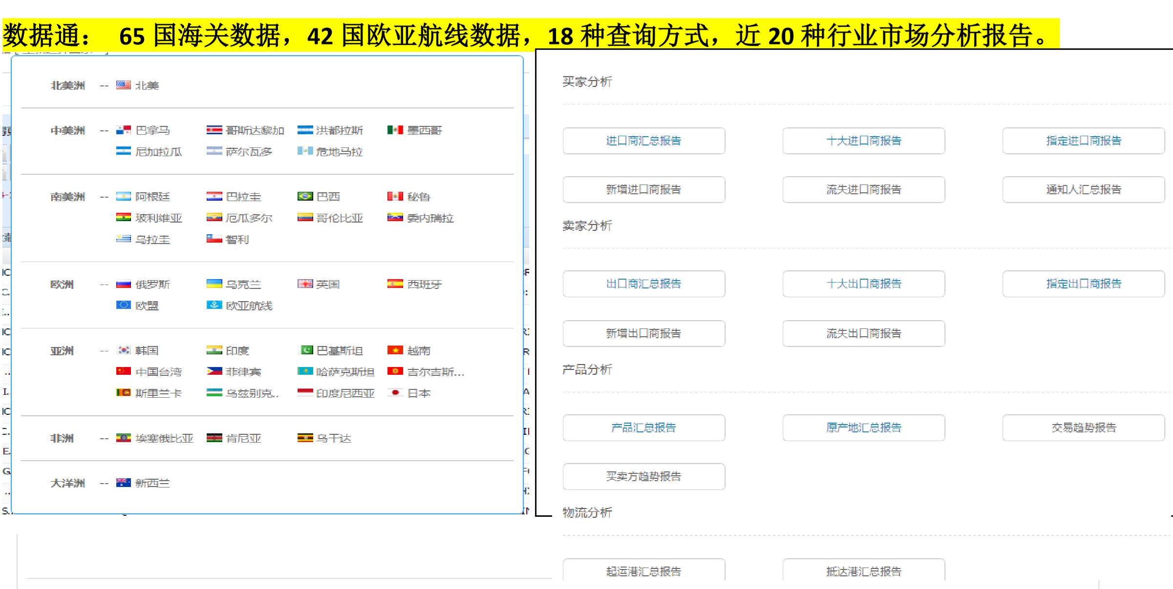 凯发K8海关数据库,实时给予全球涵盖65国海关数据,42国欧亚航线数据,100+亿实时贸易数据,定位1.8亿全球企业信息,帮助您分析全球市场贸易趋势及分布,为您的产品快速、精准、科学地锁定热销国家和新兴市场。